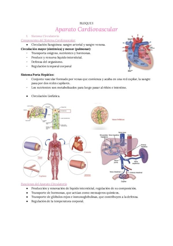 Apuntes del Aparato Cardiovascular de la asignatura Anatomía II de primero de fisioterapia.