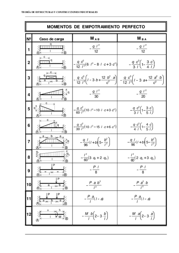 He publicado nuevos apuntes de 3º Teoría de Estructuras y Construcciones Industriales: MomentosEmpotramientoPerfecto.pdf