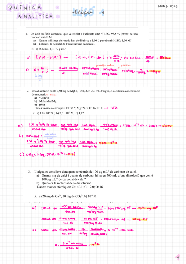 He publicado nuevos ejercicios de 1º Química Analítica: PROBLEMES QUÍMICA ANALÍTICA
