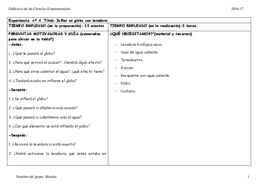 He publicado nuevos practicas de 2º Didáctica de las Ciencias Experimentales: Levadura.pdf