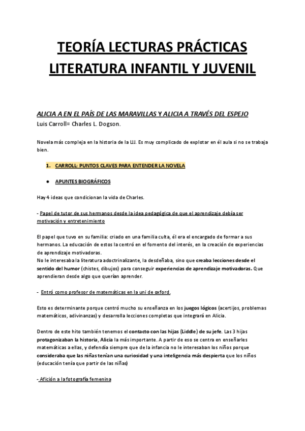 APUNTES TEMARIO LITERATURA INFANTIL Y JUVENIL