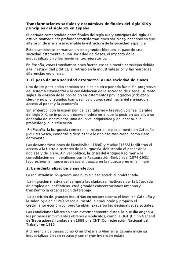 Transformaciones sociales y económicas finales del S.xix, principios del xx