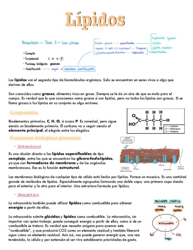 Apuntes del bloque de bioquímica: lípidos. Para 2º de bachiller y PAU.