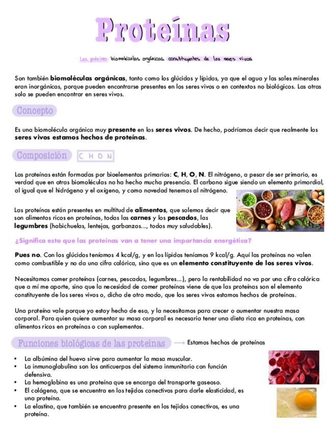 Apuntes del bloque de bioquímica: proteínas. Para 2º de bachiller y PAU.