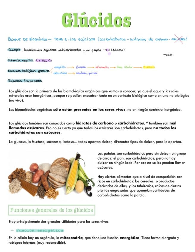 Apuntes del bloque de bioquímica: glúcidos. Para 2º de bachiller y PAU.