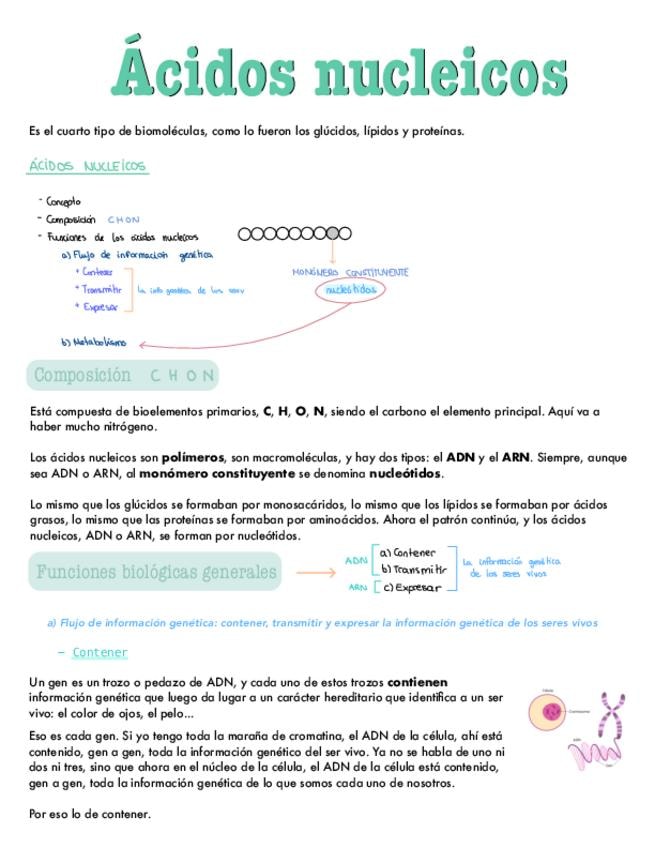 Apuntes del bloque de bioquímica: ácidos nucleicos. Para 2º de bachiller y PAU.