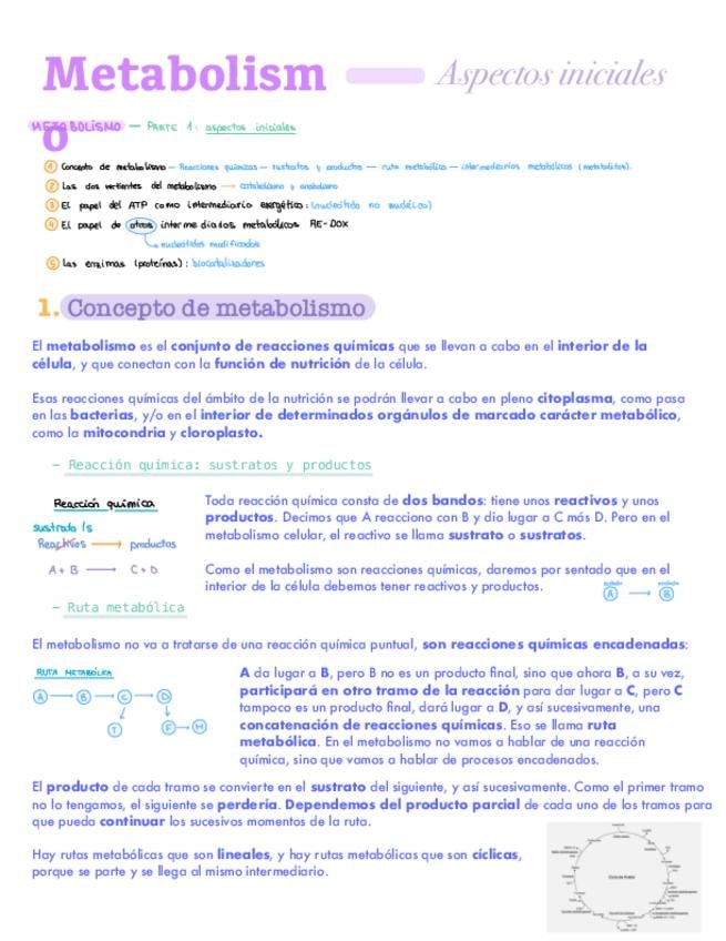 Apuntes del bloque de metabolismo: introducción. Para 2º de bachiller y PAU.