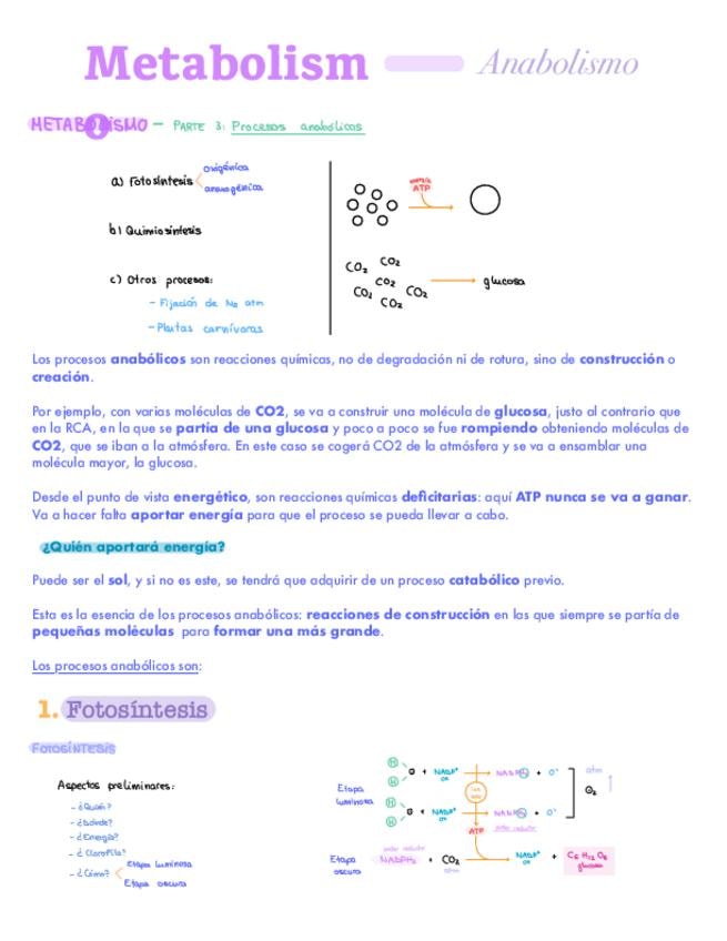 Apuntes del bloque de metabolismo: anabolismo. Para 2º de bachiller y PAU.