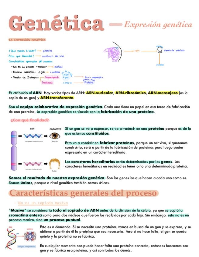 Apuntes del bloque de genética: expresión genética. Para 2º de bachiller y PAU.