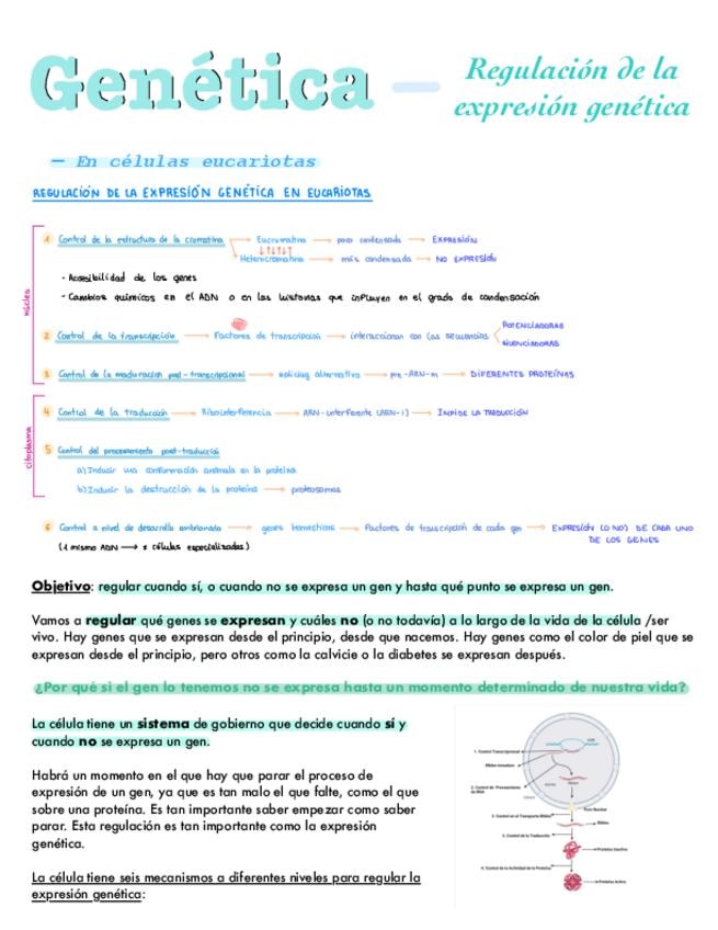 Apuntes del bloque de genética: regulación de la expresión. Para 2º de bachiller y PAU.