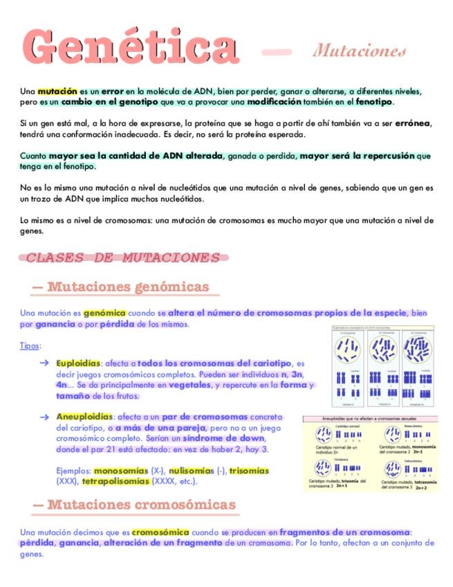Apuntes del bloque de genética: mutaciones. Para 2º de bachiller y PAU.