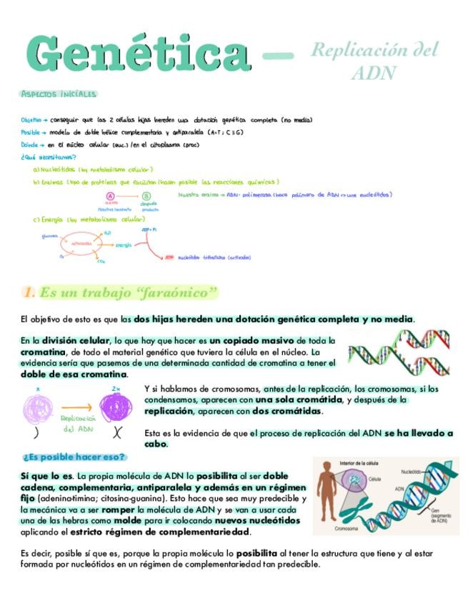 Apuntes del bloque de genética: replicación del ADN. Para 2º de bachiller y PAU.