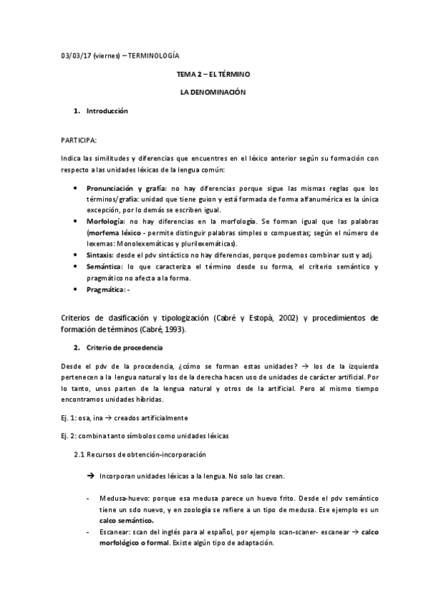 He publicado nuevos apuntes de 2º Terminología: Terminología