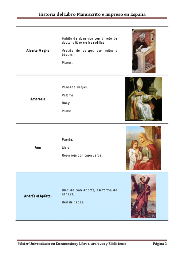 Ayuda a identificar a los santos en las ilustraciones de las láminas.