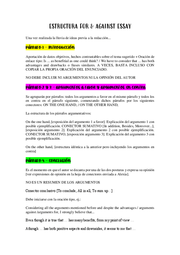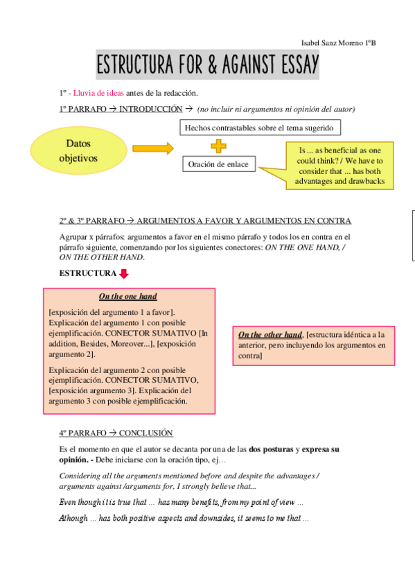 He publicado nuevos apuntes de 1º Inglés I: ESTRUCTURA-FOR-and-AGAINST-ESSAY.pdf