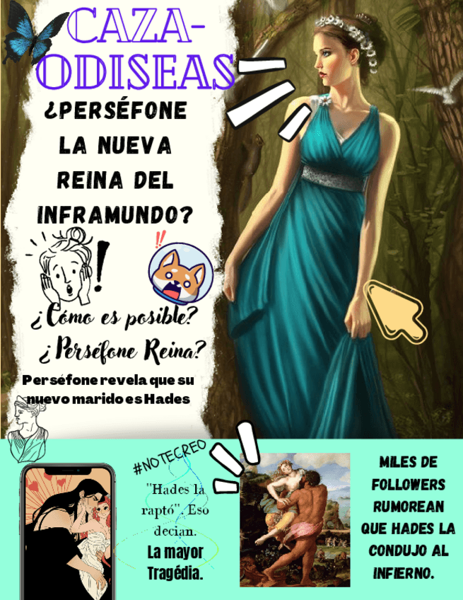 Poster creativo sobre Perséfone. La reina del inframundo /literatura y Mitología Griega