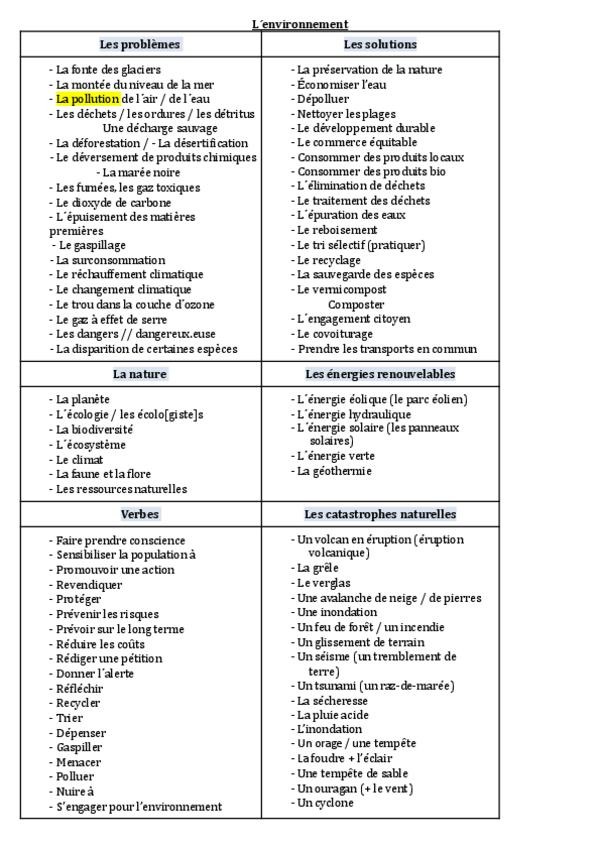 Vocabulario de animales, trabajos y medioambiente, resumen muy breve de casi todos los tiempos verbales (muy útil), comparatifs, negatif…