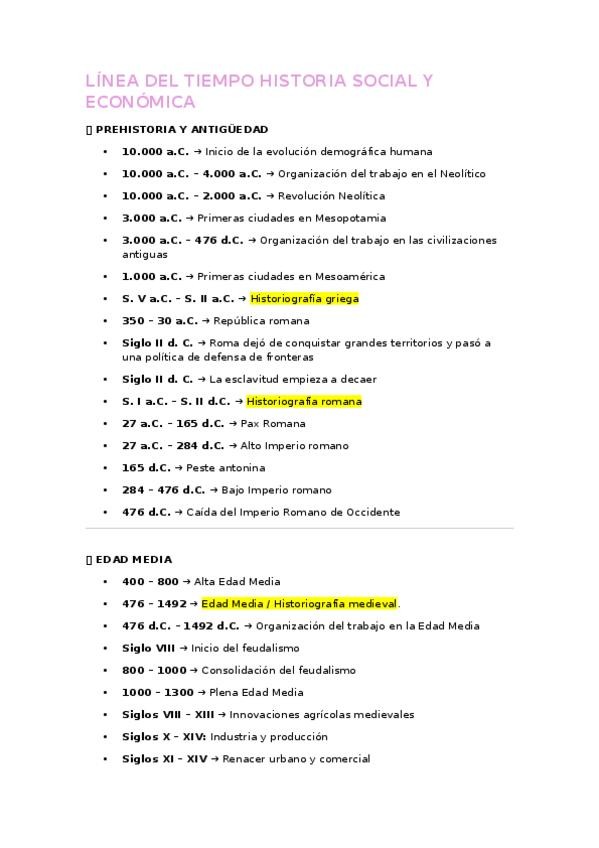 Linea del tiempo de todos los temas historia social y económica ADE