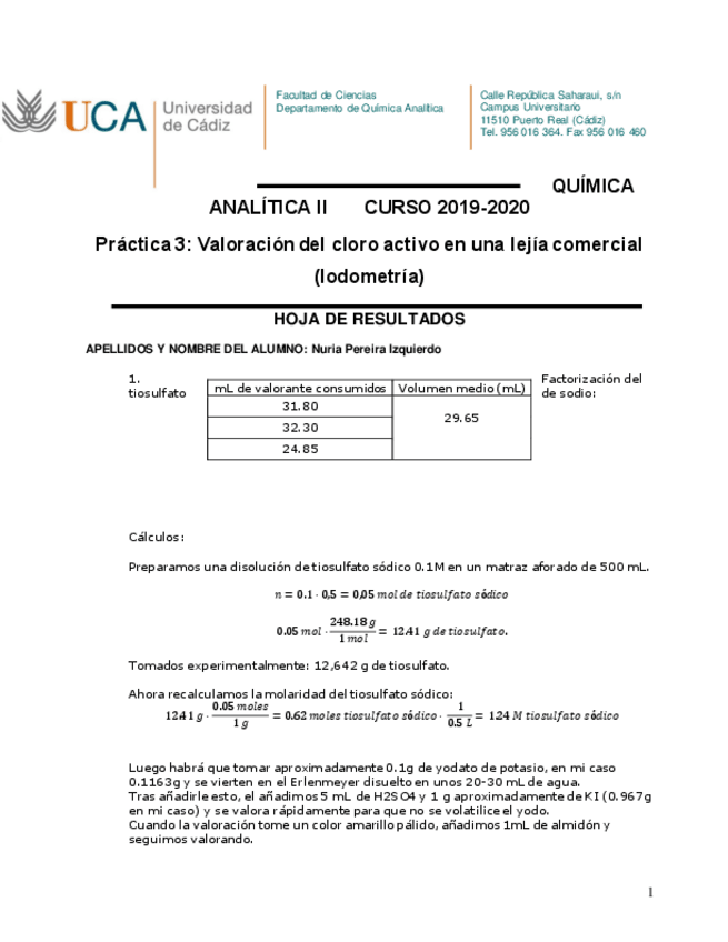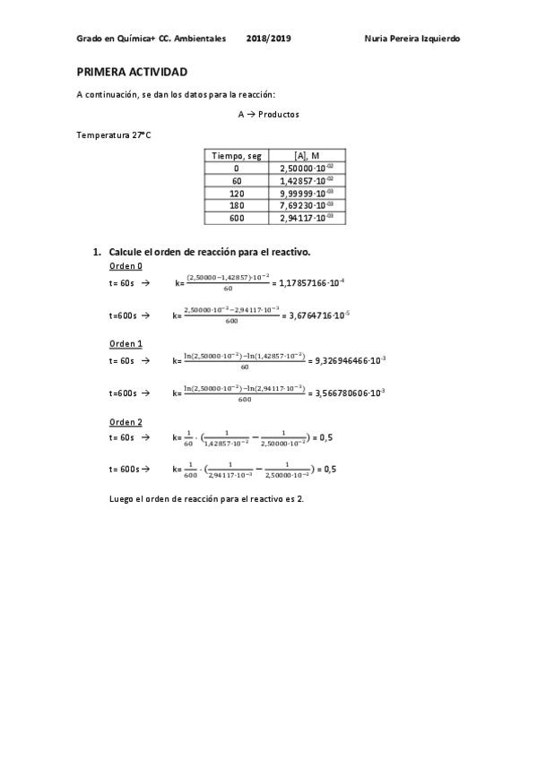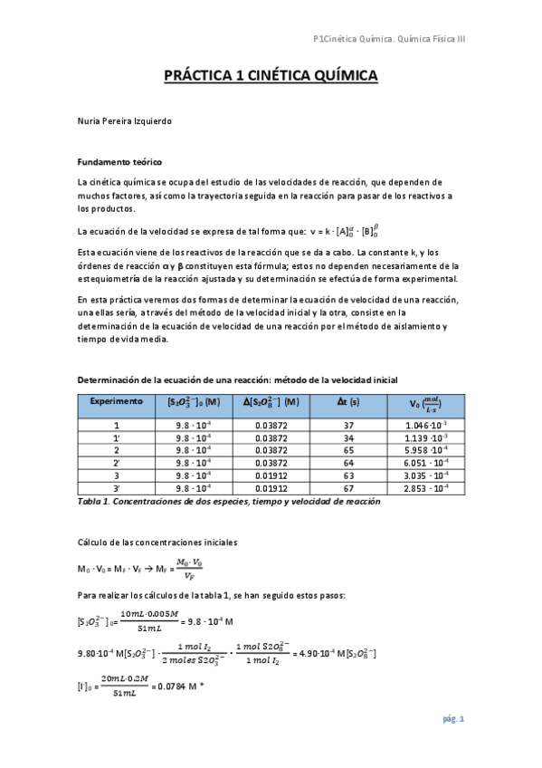 He publicado nuevos apuntes de 2º Quimica Física III: PRÁCTICA 1 CINÉTICA QUÍMICA