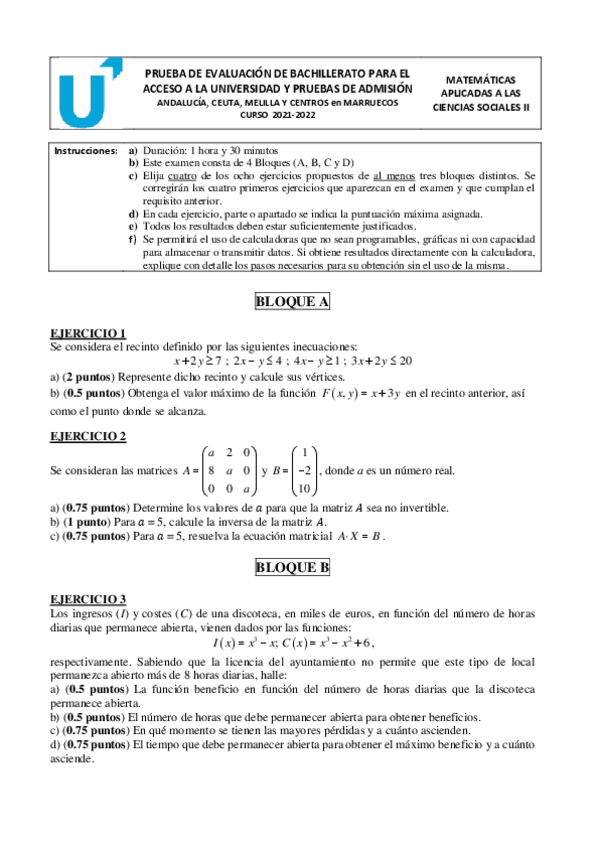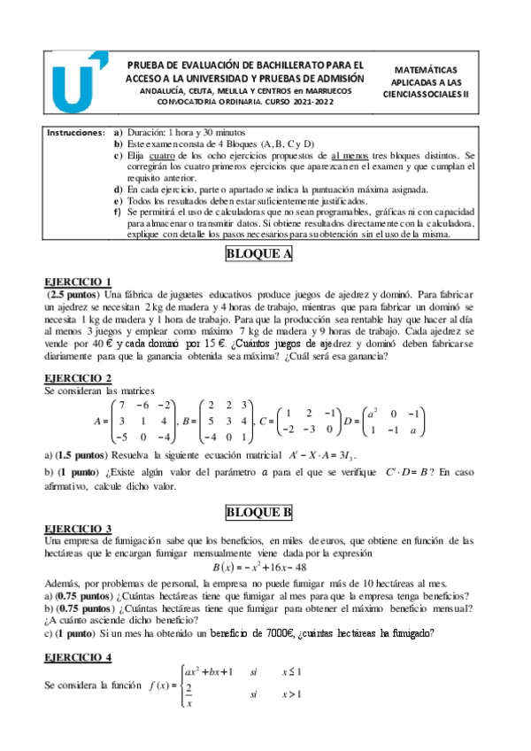 He publicado nuevos examenes de Matemáticas aplicadas a las Ciencias Sociales II: Examen Resuelto PEVAU Andalucia 2022 (Junio-Reserva).pdf