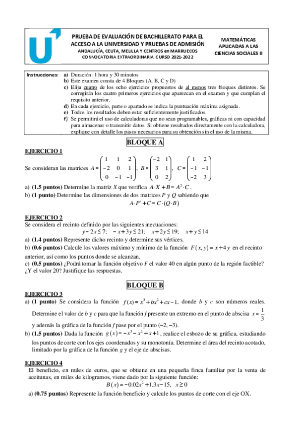 He publicado nuevos examenes de Matemáticas aplicadas a las Ciencias Sociales II: Examen Resuelto PEVAU Andalucia 2022 (Julio-Suplente).pdf