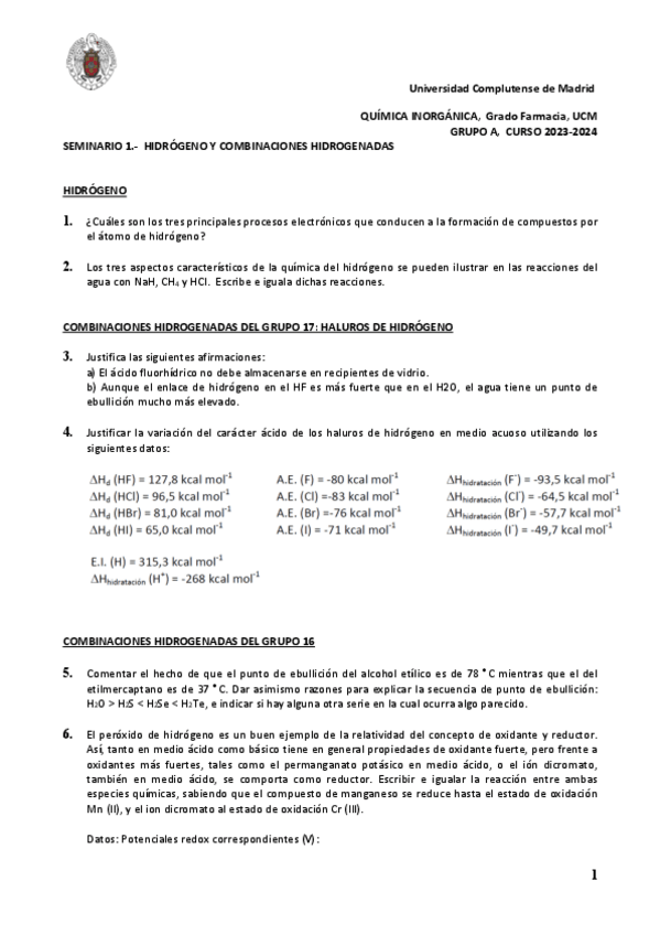 He publicado nuevos ejercicios de 1º Química Inorgánica: SEMINARIOS 24/25 NATI Y DANIEL ARCOS CON CORRECCIONES