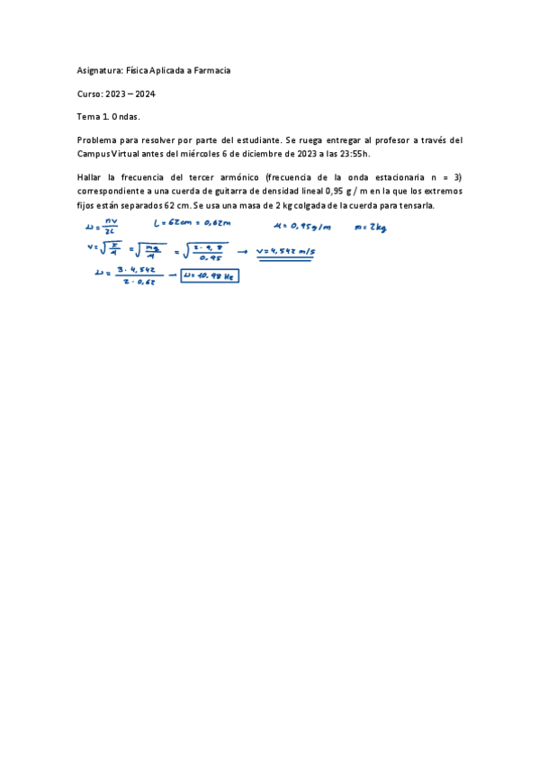He publicado nuevos apuntes de 1º Fisica Aplicada a la Farmàcia: ENTREGAS ONDAS