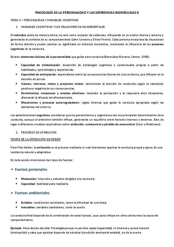 Psicología de la Personalidad y las Diferencias Individuales II