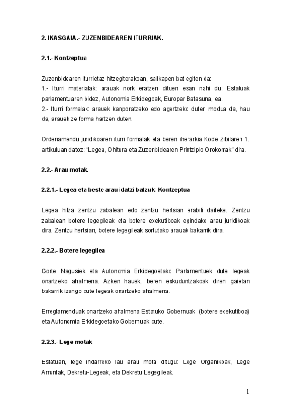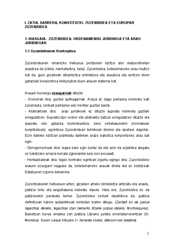 He publicado nuevos apuntes de 1º Introducción al Derecho: Zuzen gaiak laburtuta. Azterketarako