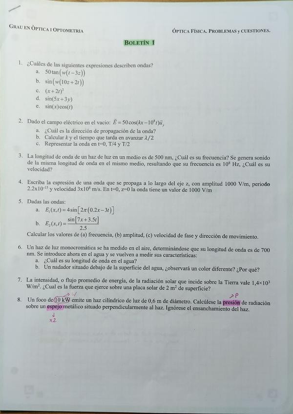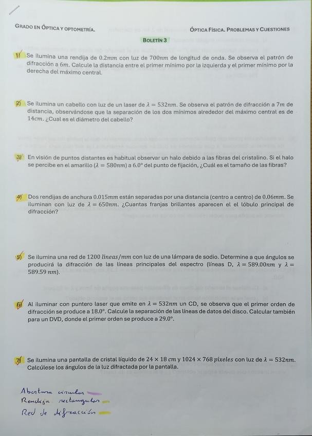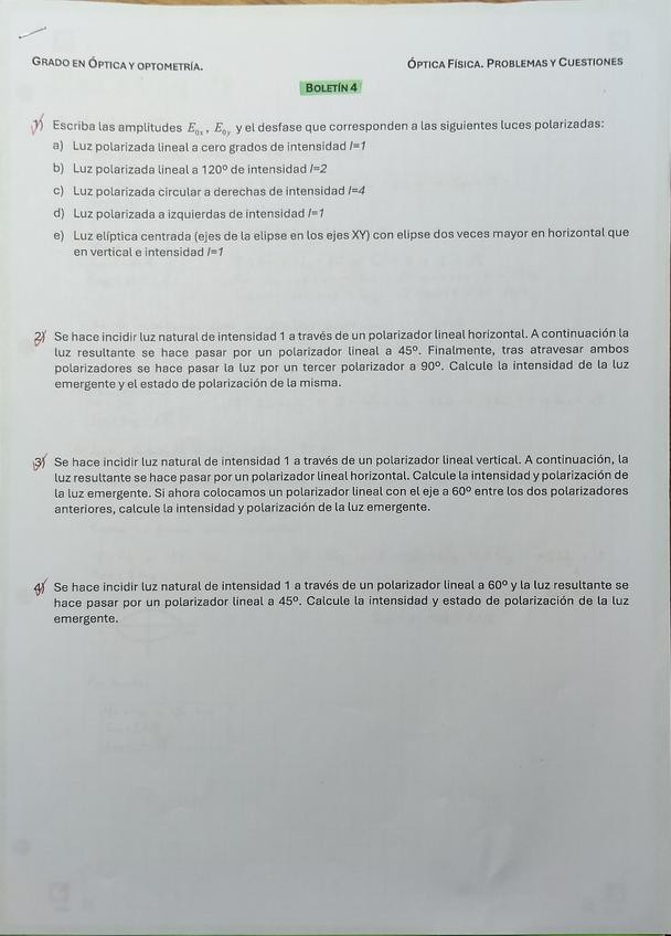 He publicado nuevos ejercicios de 3º Optica Física: BOLETINES
