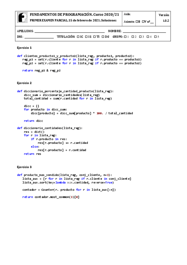 He publicado nuevos examenes de 1º Fundamentos de Programación: Examen 1 PARCIAL Python 2020/21 - Ventas