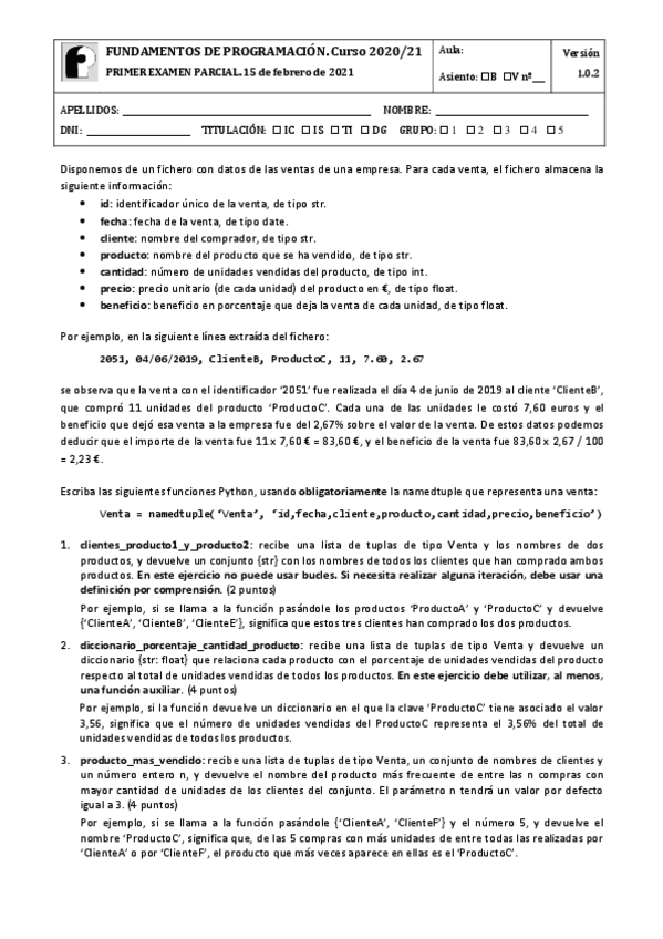 Examen 1 PARCIAL Python 2020/21 - Ventas