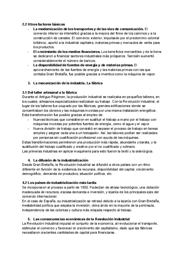 1. Las bases de la Revolución Industrial en Gran Bretaña (I) 2. Las bases de la Revolución Industrial en Gran Bretaña (II) 3. La mecanización de la industria. La fábrica 4. La difusión de la industrialización 5. Las consecuencias económicas de la Revoluci