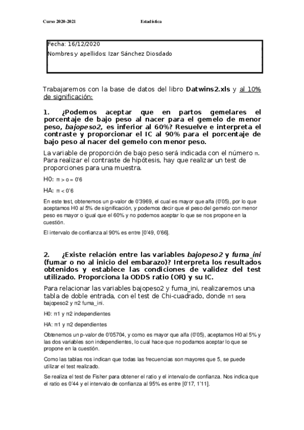He publicado nuevos practicas de 1º Estadística: Prácticas completas (MUY buena nota)