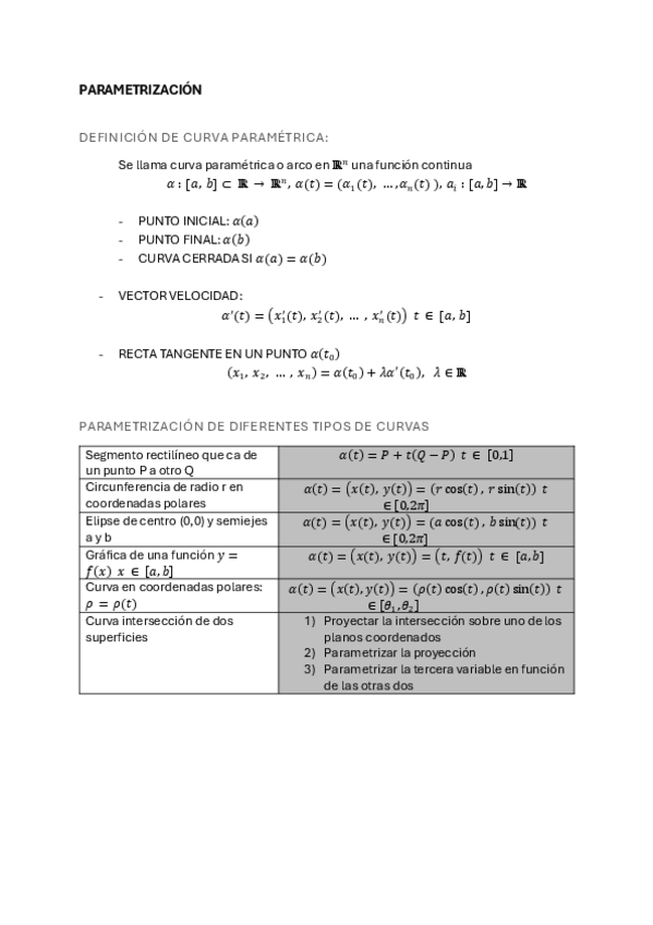 Resum formules parametrització