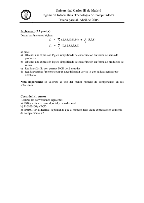 He publicado nuevos examenes de 1º Tecnología de Computadores: IInf-TC-2006-1P.pdf