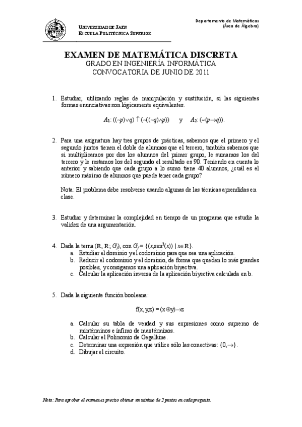 He publicado nuevos examenes de 1º Matemática Discreta: Exámenes