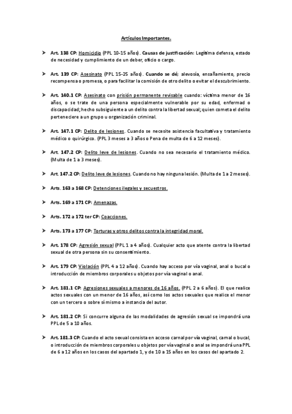 Glosario de los artículos más importantes del Código Penal para el examen.