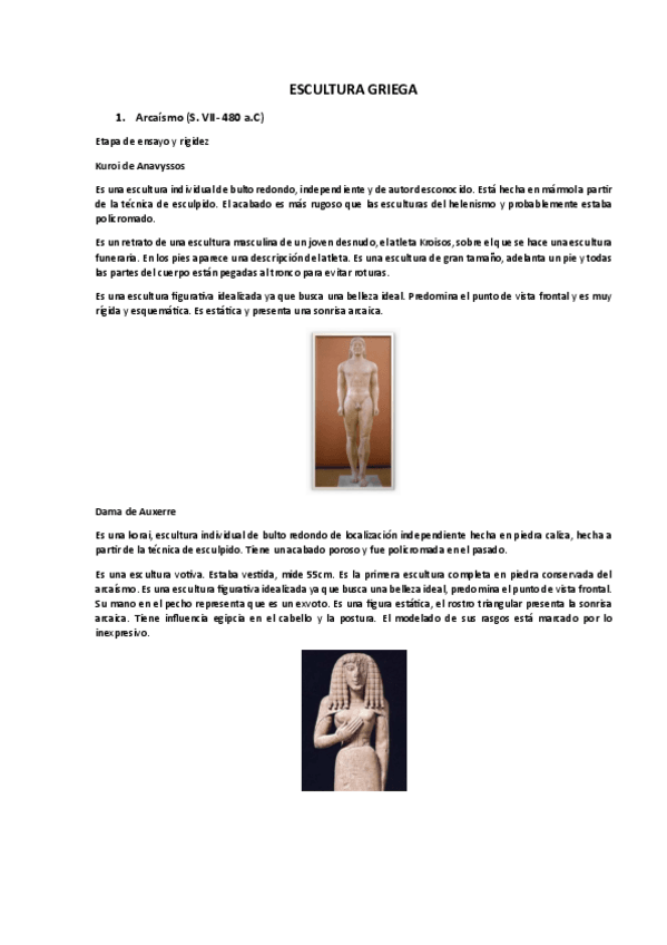 RESUMEN OBRAS ARTE GRIEGO