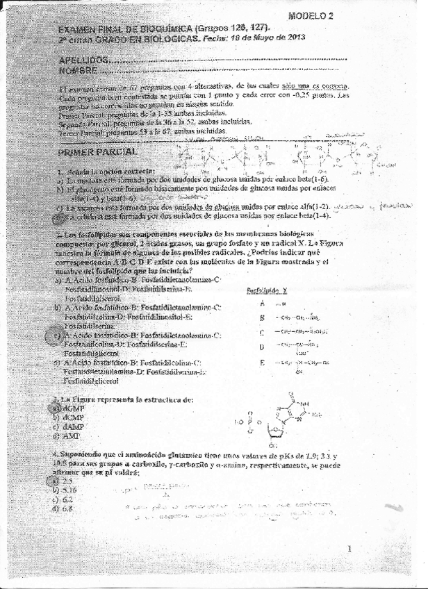 He publicado nuevos examenes de 2º Bioquímica: Primer parcial