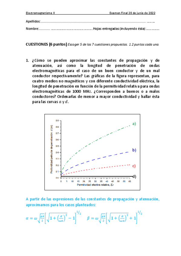 He publicado nuevos examenes de 2º Electromagnetismo II: Examen Julio 2022 - Pedro Antoranz