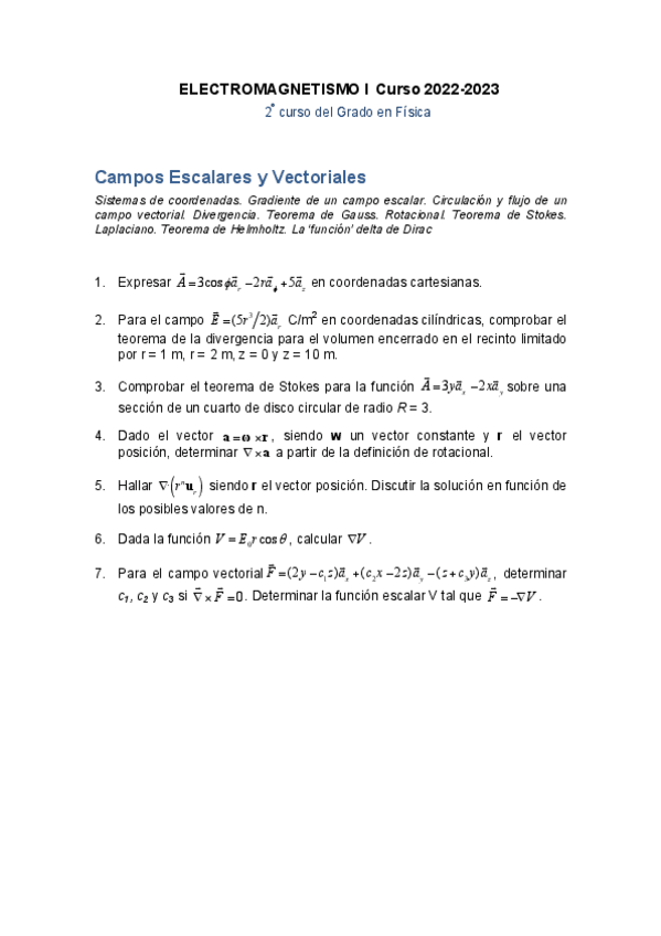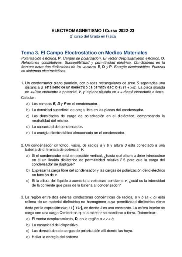 He publicado nuevos ejercicios de 2º Electromagnetismo I: Entregables - Jacobo Santamaría / Carlos León