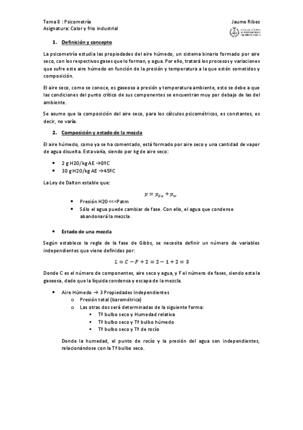 He publicado nuevos apuntes de 3º Calor y Frío Industrial: Teoría Parcial 1