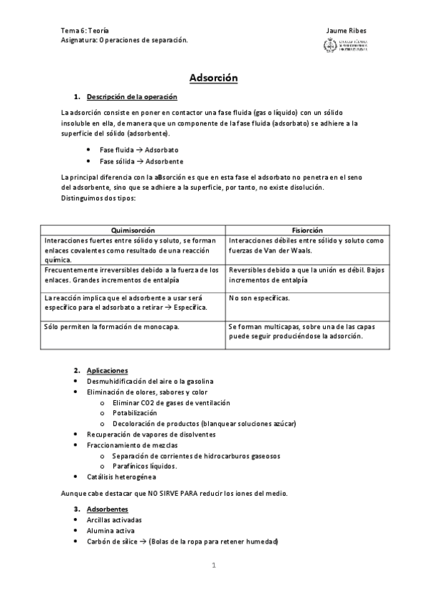 He publicado nuevos apuntes de 3º Operaciones de Separación: Teoría Parcial 1