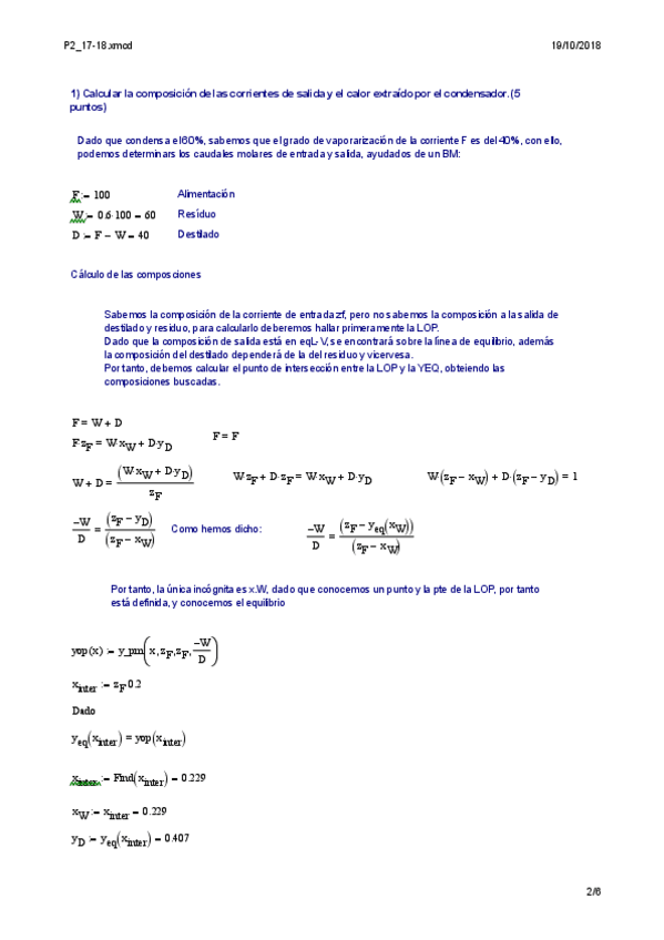 He publicado nuevos examenes de 3º Operaciones de Separación: Mathcad - P2_17-18_DEST.pdf