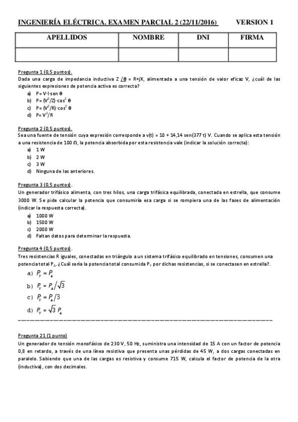 He publicado nuevos examenes de 2º Ingeniería Eléctrica: 1 Parcial 2016/2017