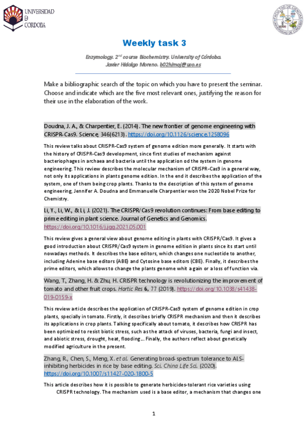 He publicado nuevos apuntes de 2º Enzimología: Seminario CRISPR