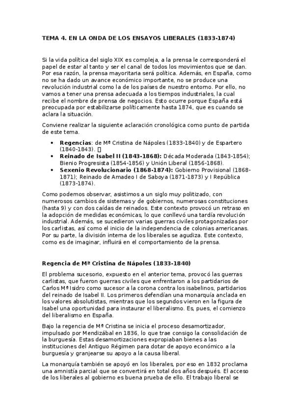 Temario Historia del Periodismo Español