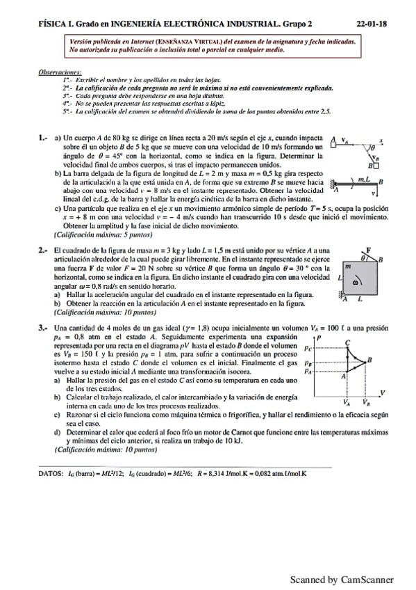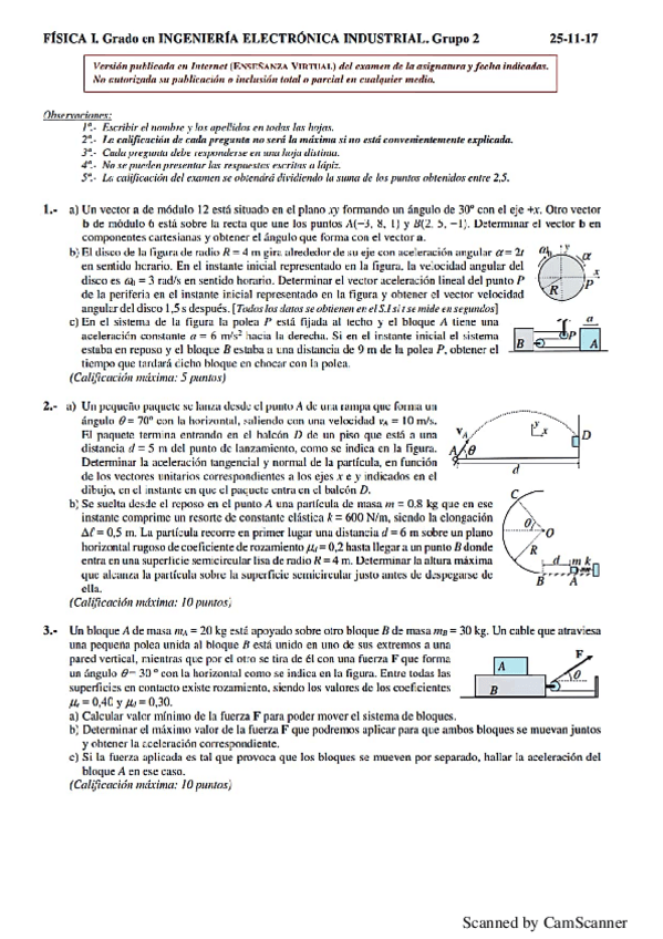 He publicado nuevos examenes de 1º Física I: Exámenes curso 17/18