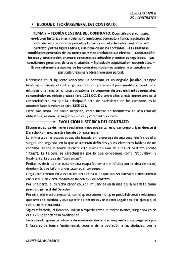 Apuntes de la parte de contratos, saqué un 9. Faltan 2 temas (donacion y mandato) que estudie por el manual de Lasarte.